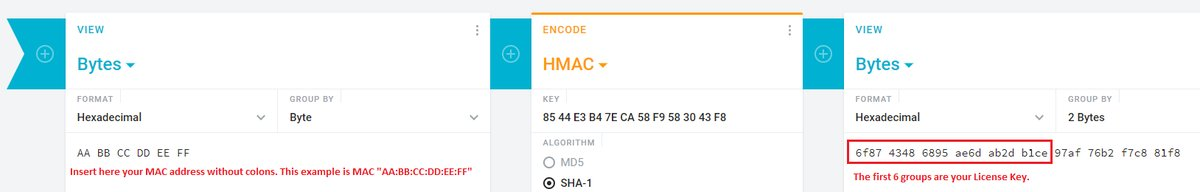 左边粘贴你找到的bmc mac地址,记得把冒号换成空格,否则无法计算,右侧按照图里选择,自动生成后,复制右侧框中的部分到激活页面点击就行